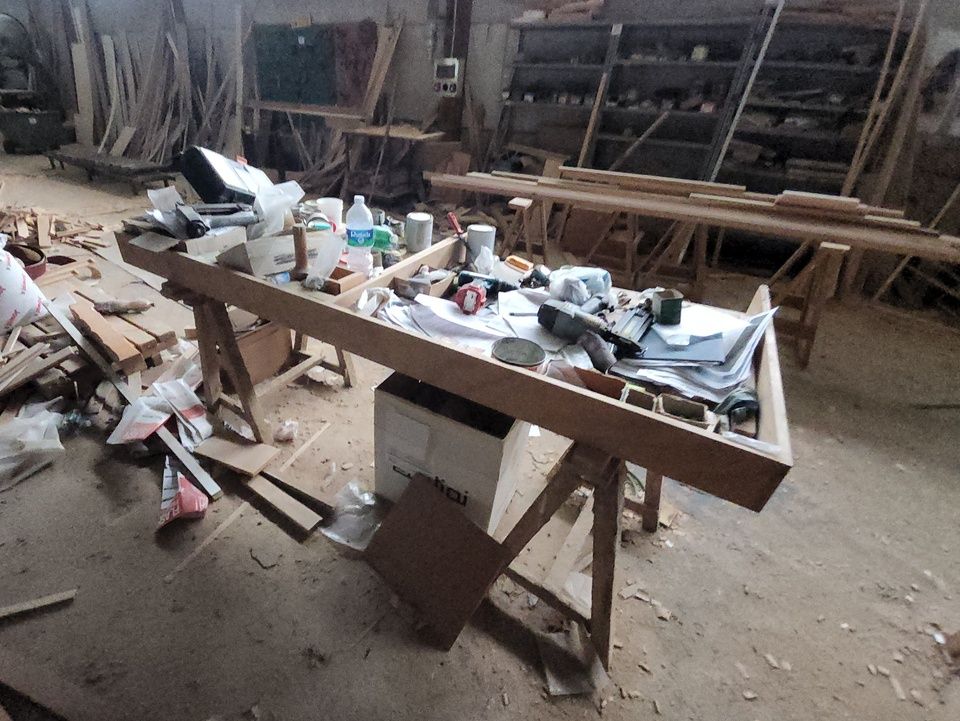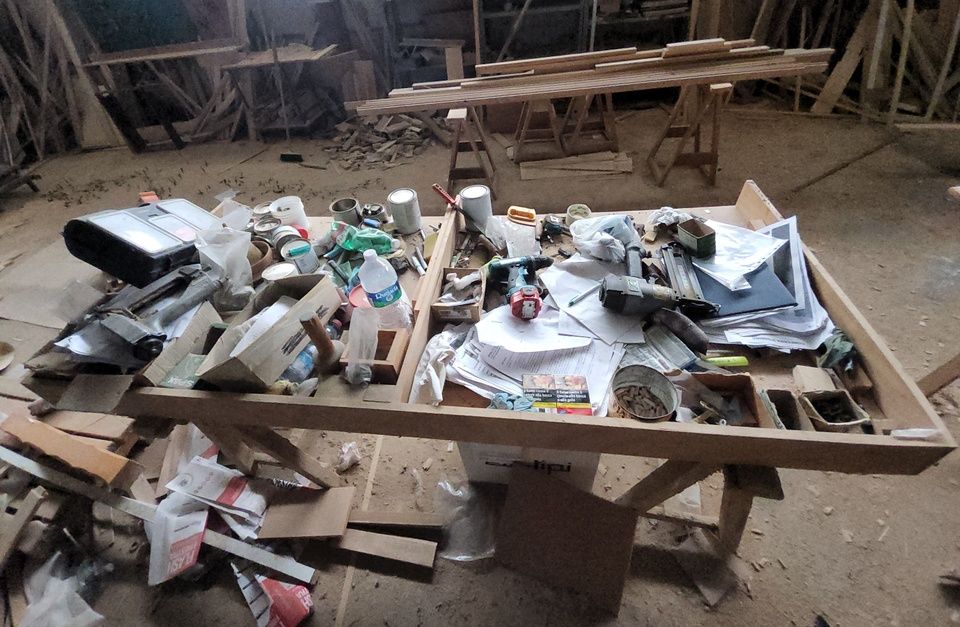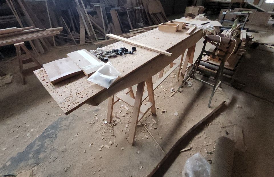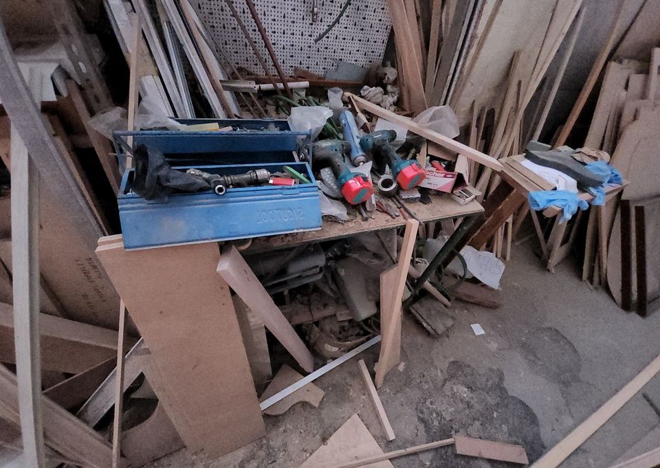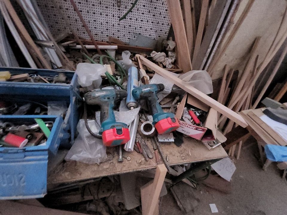 Verschiedene Tische, Bänke aus Holz oder Metall