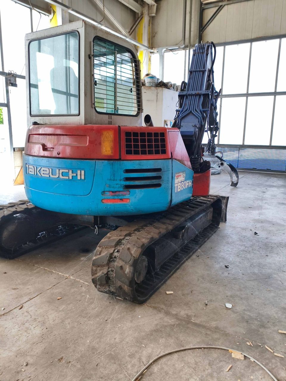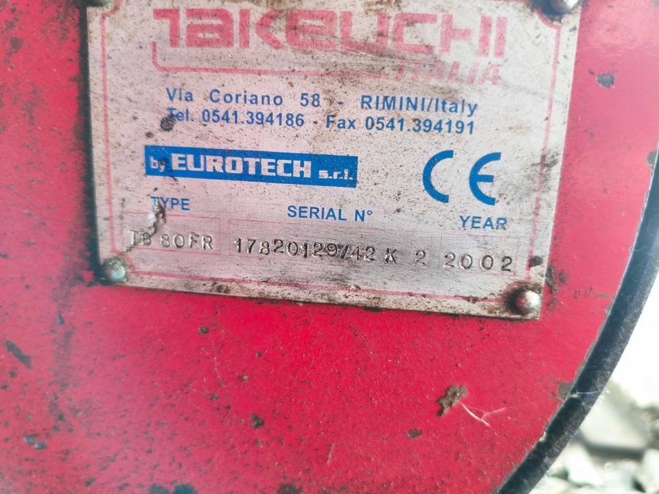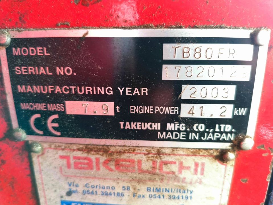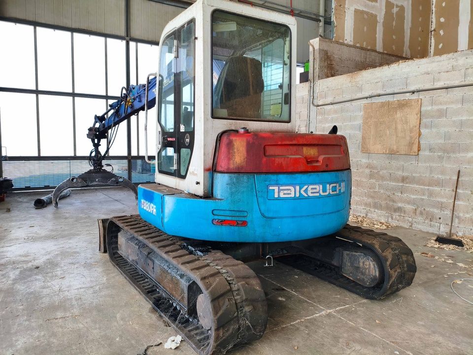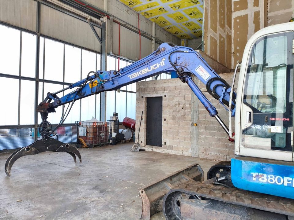 n. 1 Excavadora de Orugas Takeuchi mod. TB80FR, año 2003, con Rotador Marca Baltrotors Modelo GR104DB Año 2015, con Cuchara Pinza, horas de Trabajo: 6296 - ref. 45