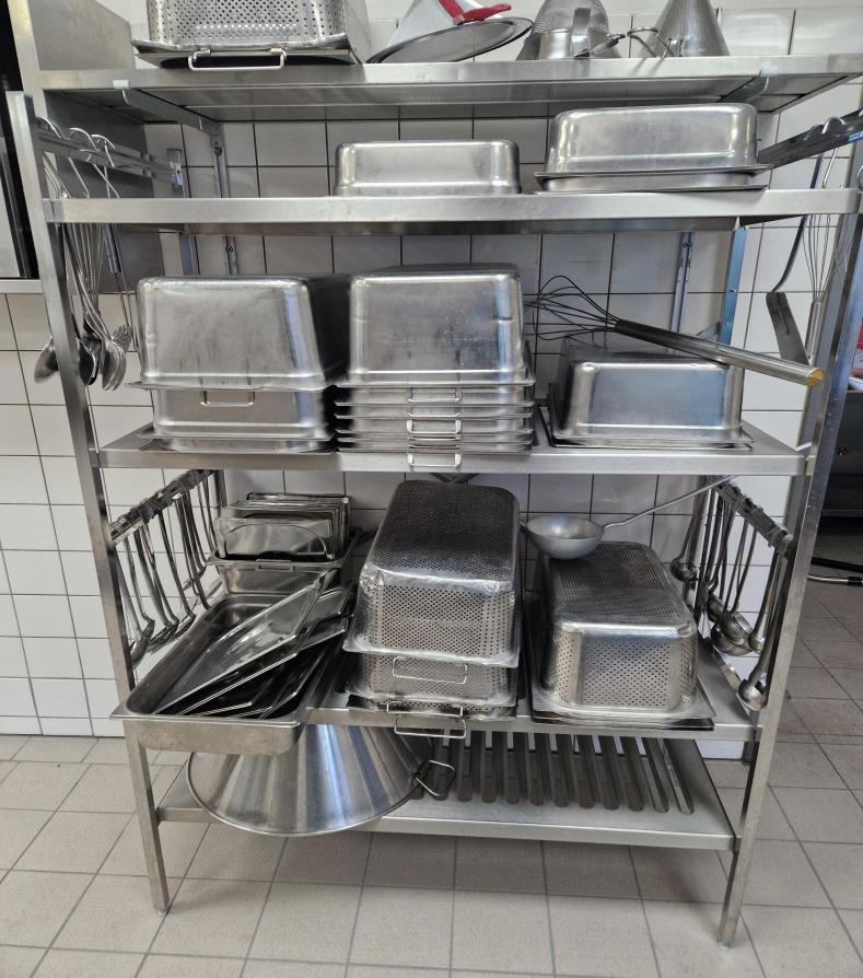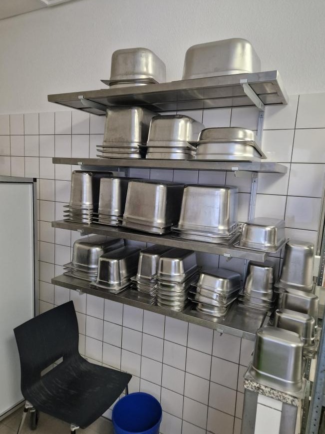 n. 3 hyllor i stål, komplett med skålar, mått 80X35