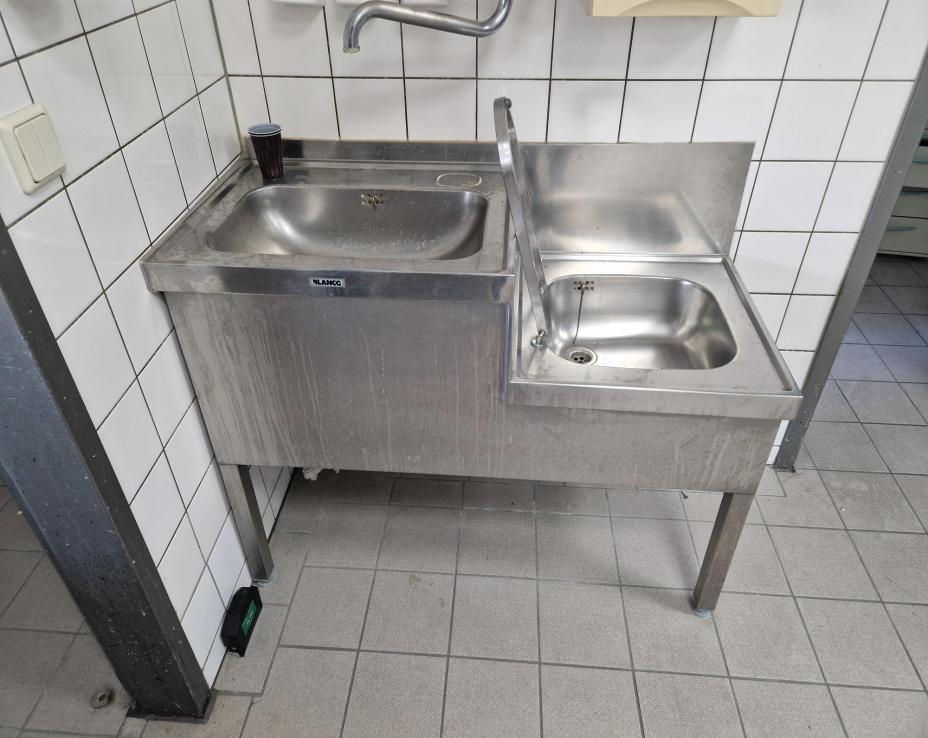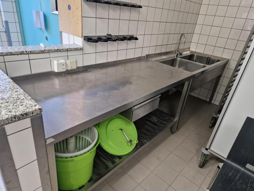 arbetsbänk komplett med handfat med 2 skålar, mått 311X70X84h