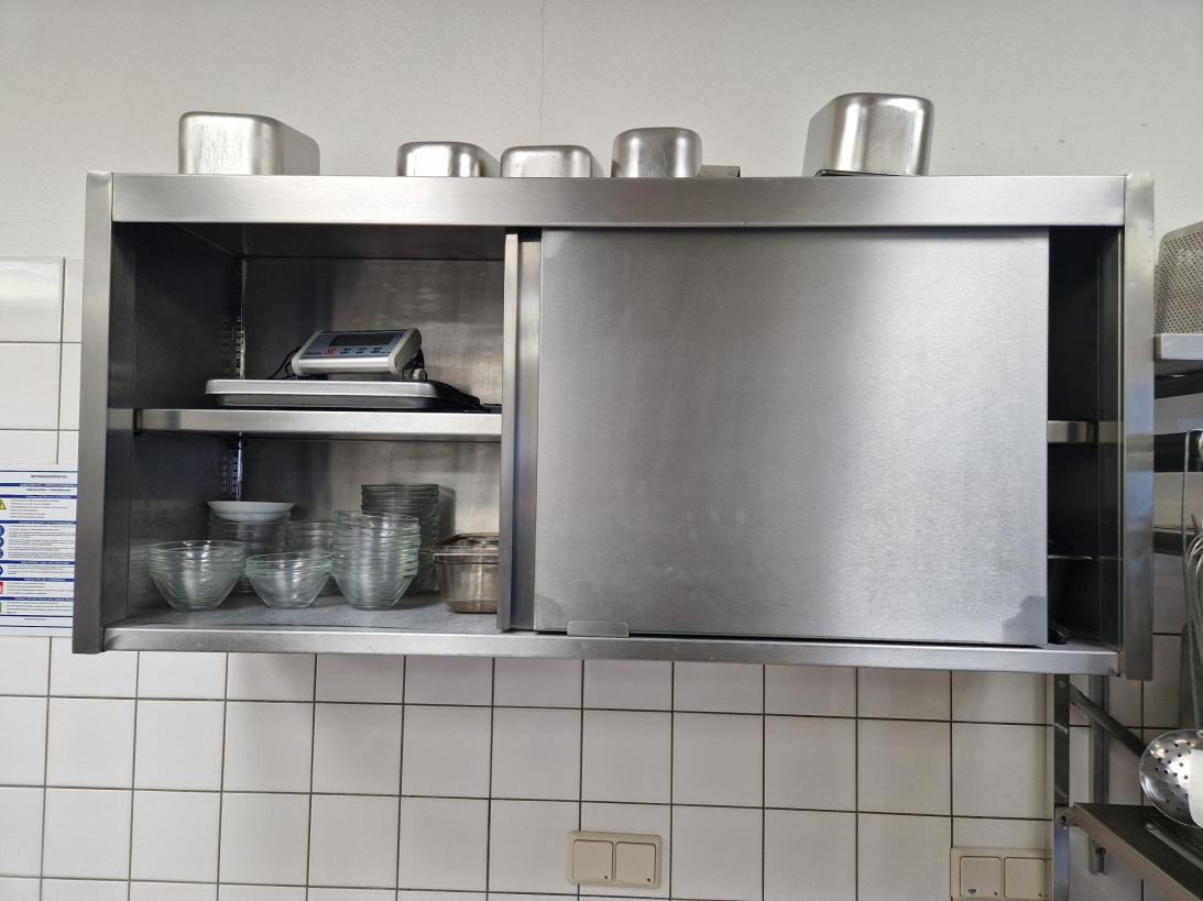 n. 2 väggskåp i stål med skjutdörrar, komplett med stöd, mått 130X40X70h