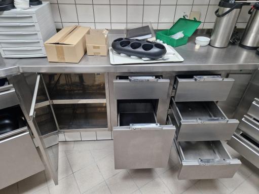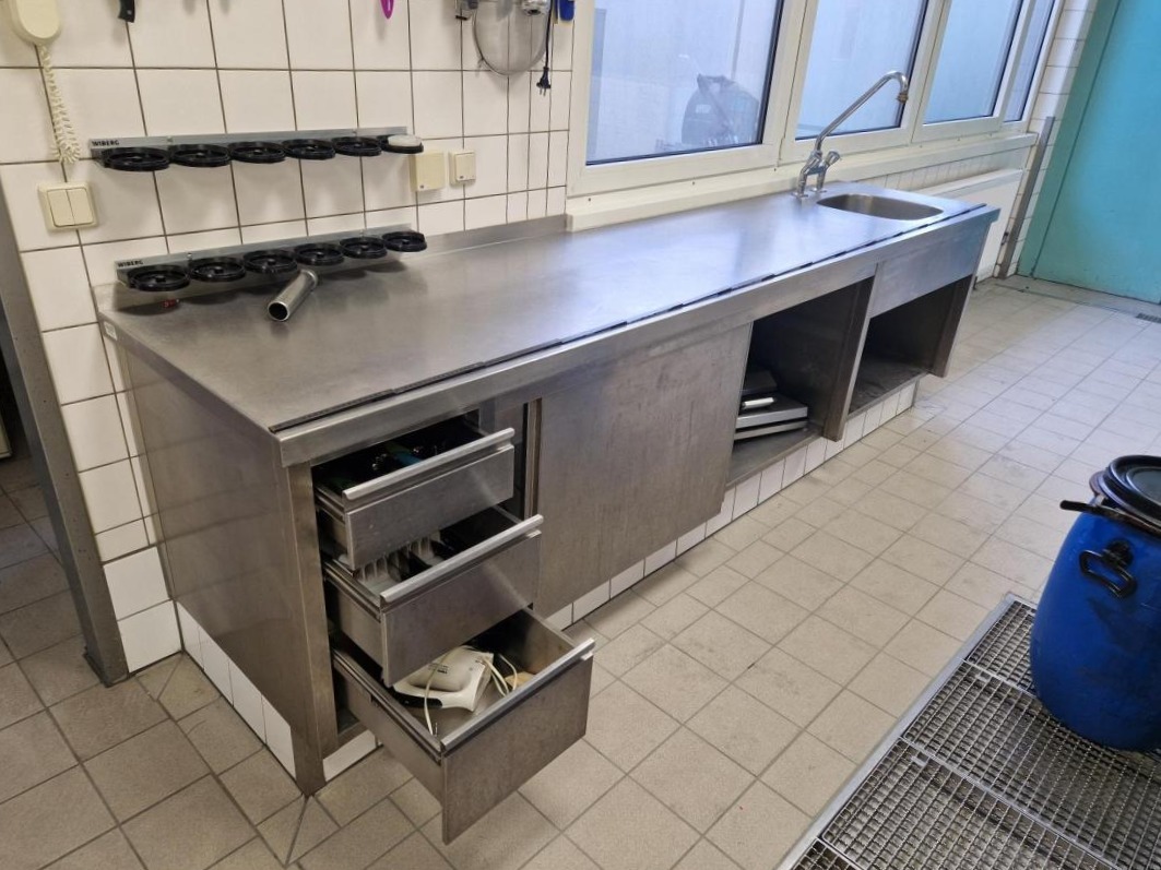 arbetsbänk med handfat 1 skål komplett med 3 lådor och centralt skåp med skjutdörrar, mått 300X60X82h